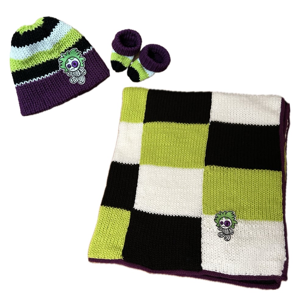 Baby Hat, Blanket & Booties Set, BabyBeetlejuice Design, Handmade