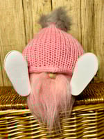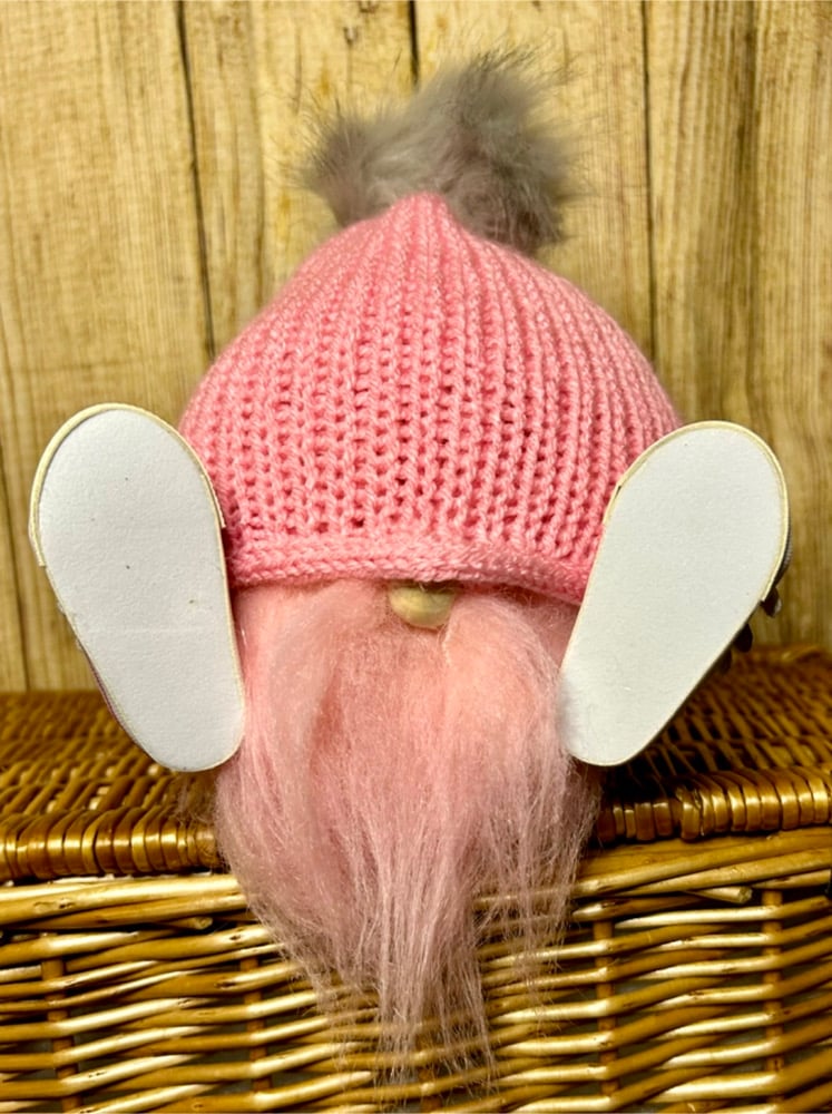 Handmade by me, this cute knitted Gonk / Gnome ornament is created using pink and white Acrylic Wool, pink faux fur beard and a wooden bead for a nose. Due to the small parts of the Gonk/ Gnome it is advised that this item is for ornamental purposes only NOT A TOY.