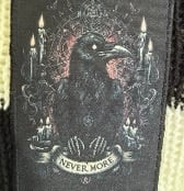 Made with Black and Cream Acrylic Yarn, featuring wooden button fastening and a ‘Nevermore’ Raven Design sewn on patch. Perfect for fans of Wednesday Adams.
